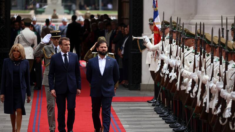 Así fue recibido Emmanuel Macron en La Moneda por el Presidente Boric