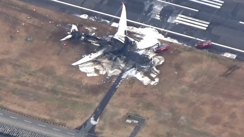 Así quedaron los aviones que chocaron y se incendiaron en Japón