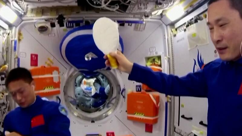 Astronautas chinos juegan ping pong con una “pelota” de agua en el espacio