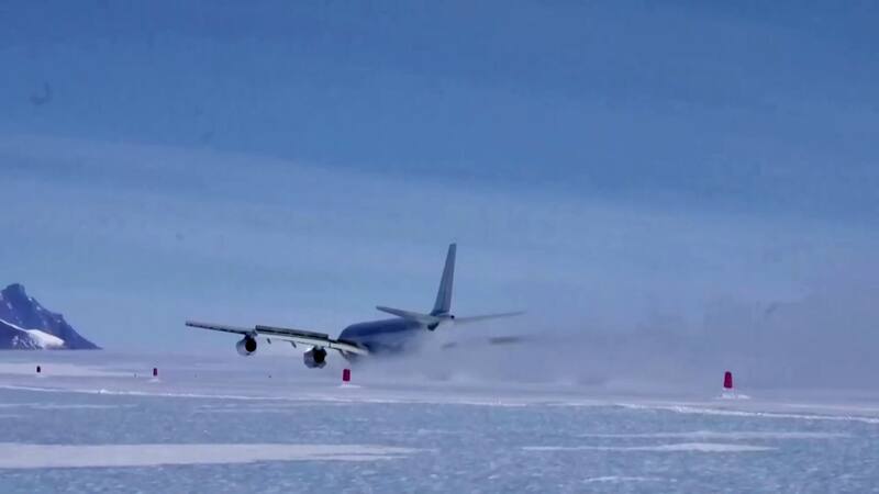 Avión comercial aterrizó por primera vez en la historia sobre una pista de hielo