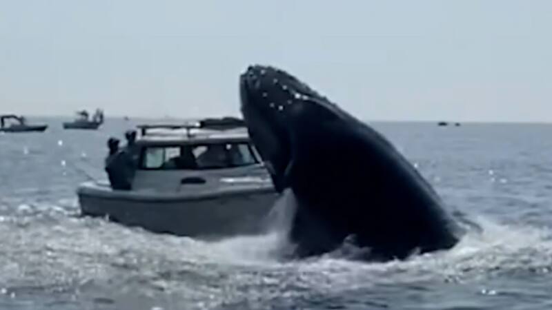 Imágenes muestran como el animal sale a la superficie y ataca a un bote frente a las costas de Plymouth en Massachusetts, luego del incidente no se registraron heridos.