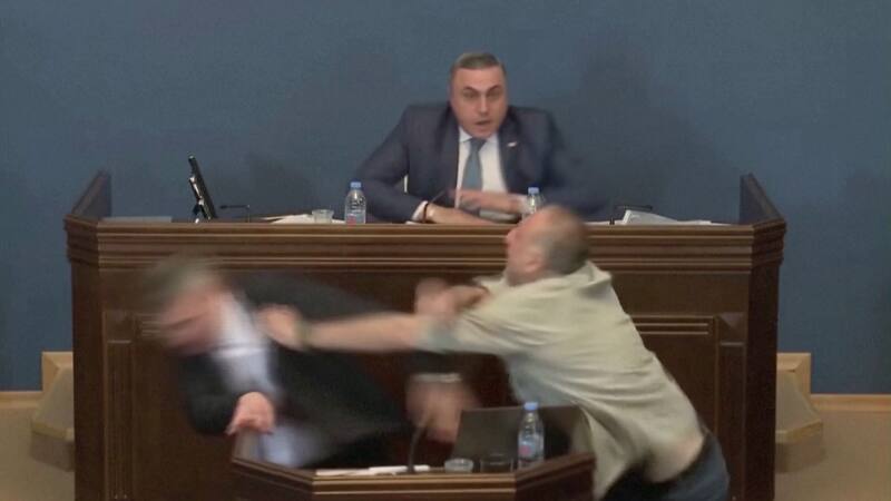 Batalla campal en el parlamento de Georgia mientras discutían un proyecto de ley