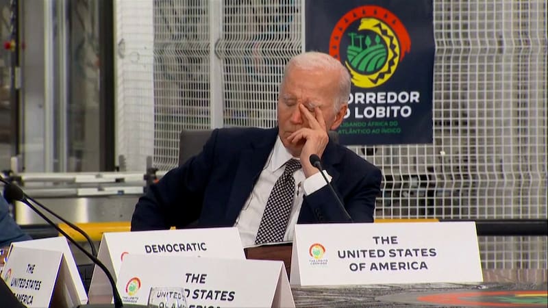 Durante la Cumbre Transafricana del Corredor Lobito, el presidente de Estados Unidos fue captado con la cabeza apoyada en su mano izquierda y los ojos cerrados en al menos dos posiciones distintas, mientras los otros asistentes intervenían y escribían.