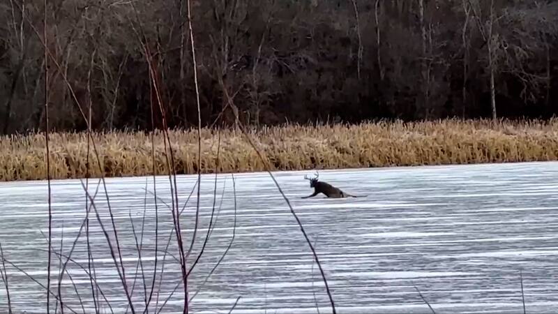 Bomberos rescatan a un venado atrapado en un lago congelado en EE.UU.