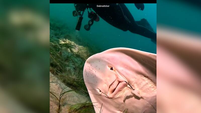 Buceadora liberó a una “raya violinista” de un anzuelo en Australia