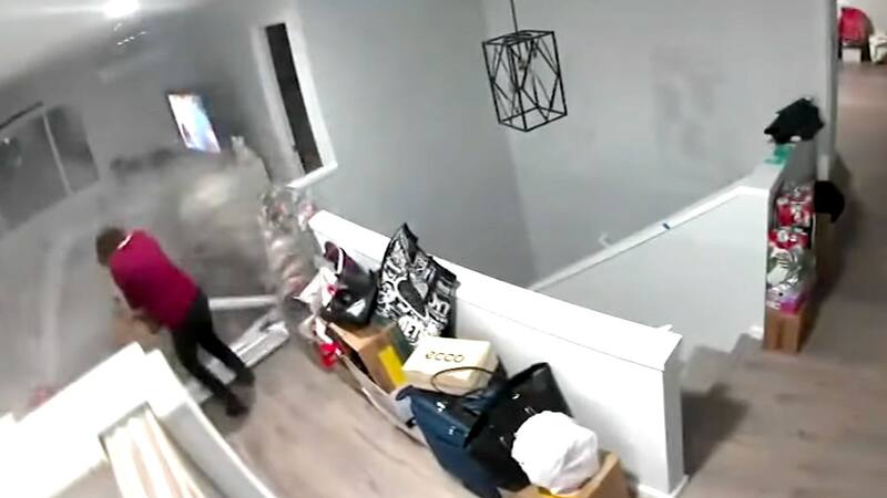 El dramático registro da cuenta como roca gigante colisionó contra el inmueble y entra de golpe a la sala de estar de la familia.