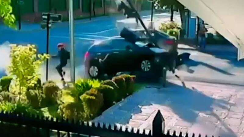Cámaras de seguridad captan a una mujer que se salvó por centímetros de ser atropellada por un auto en Vitacura