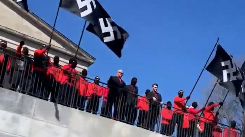 Manifestantes del grupo neonazi "Blood Tribe" salieron a marchar en la capital de Tennessee, cantando y flameando una bandera negra con esvástica. No se reportaron arrestos ni daños.