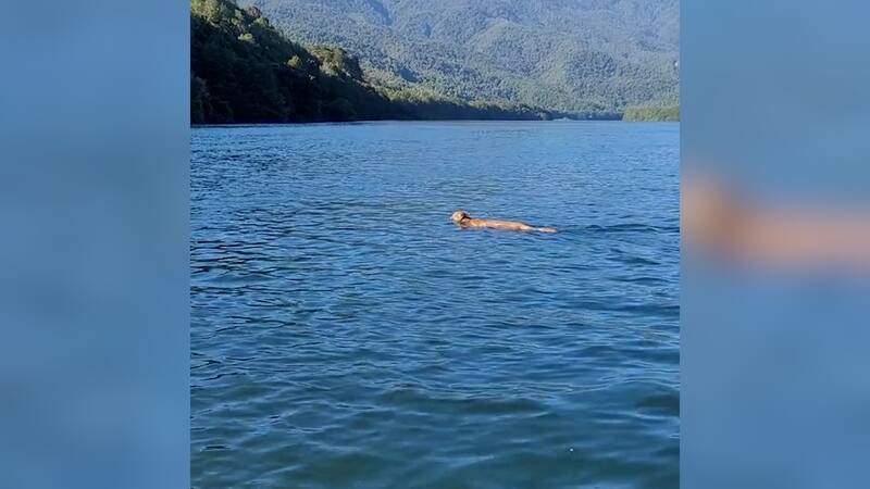 Captan a un puma nadando y cruzando un río en el sur de Chile