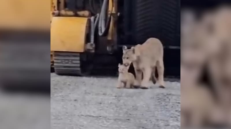 Captan el momento en que una madre puma rescata a su cría atrapada en una máquina de construcción