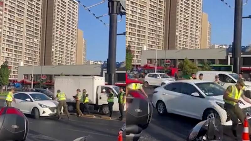 Momentos más tarde, el conductor realizó la misma acción en contra de una carabinera, quienes no usaron el arma de servicio por lo transitado del lugar. Carabineros ya está tomando acciones.