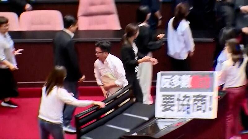En medio del debate de una iniciativa de la oposición de otorgar a los parlamentarios mayores poderes de control sobre el Gobierno, el miembro del partido gobernante Kuo Kuo-wen arrebató los documentos, creando una escena surrealista que ya estaba candente, con políticos golpeándose.