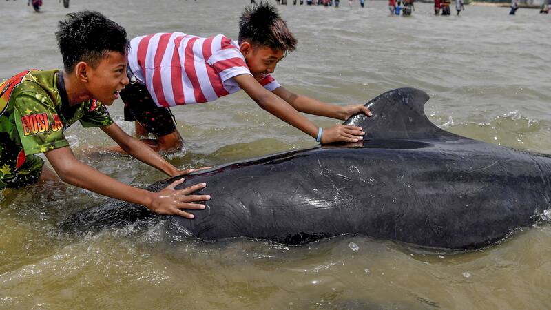 Cuarenta y seis ballenas varadas en una playa en la isla de Madura murieron, mientras que los rescatistas y voluntarios lograron empujar a tres de regreso al mar. Según Whale Stranding Indonesia, una organización no gubernamental, en 2020 se encontraron más de 70 mamíferos marinos varados