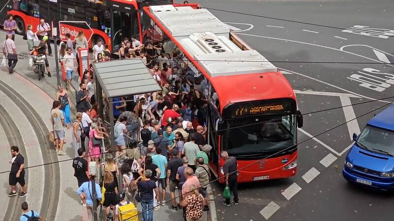 Decenas de personas logran levantar un bus en España y rescatar a un hombre atrapado