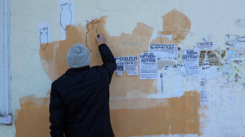 El artista callejero que denuncia la guerra de Ucrania en los muros de Borovsk