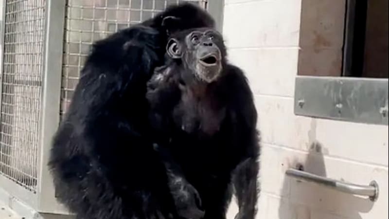 El conmovedor momento en que una chimpancé mira el cielo después de estar enjaulada toda su vida