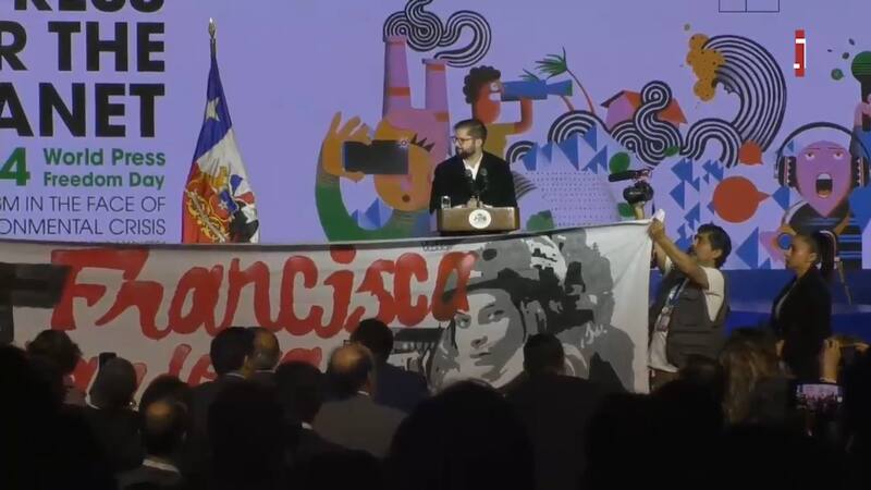Mientras mencionaba a los periodistas chilenos asesinados en los últimos años, varios asistentes lo interpelaron por no incluir a Francisca Sandoval, reportera de Señal La Victoria que fue asesinada el pasado primero de mayo en 2022.