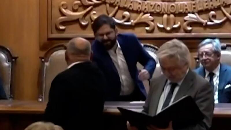 No estando en protocolo, algunos gobernadores se acercaron a saludar al Mandatario quien estaba en la testera, pero el gesto entre Mundaca y Boric provocó sorpresa y risas nerviosas en algunos.