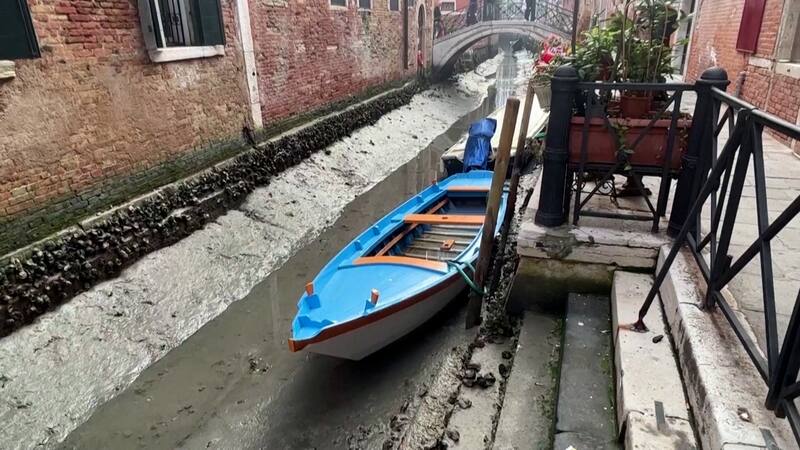 Los canales en Italia lucen secos producto de las bajas mareas y las altas temperaturas, complicando el tránsito de las góndolas, taxis acuáticos y ambulancias.