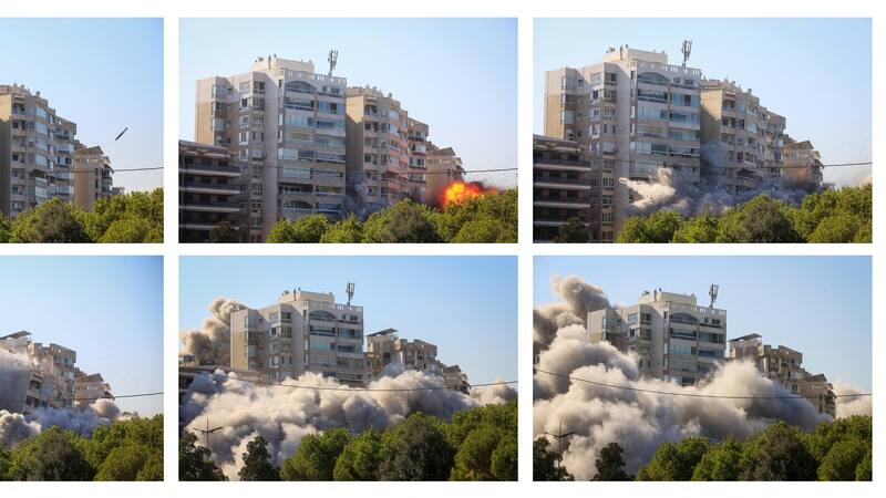 El ejército israelí llevó a cabo dos ataques aéreos en un suburbio al sur de la capital del Líbano. En las imágenes, se ve a un grupo de personas muy cerca del lugar, segundos antes que el proyectil impactara y derrumbara el edificio.