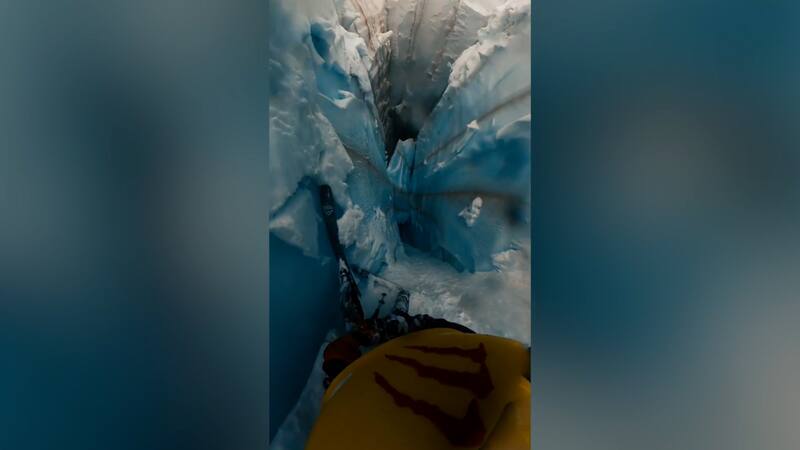 Grabado desde la cámara de su casco, un esquiador francés mostró su repentino e imparable descenso por una profunda grieta.