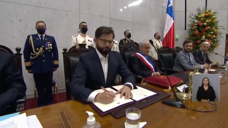 Gabriel Boric leyó brevemente el acta que oficializa su investidura y se tomó una pausa realizando un curioso gesto antes de firmar como el nuevo mandatario de nuestro país.