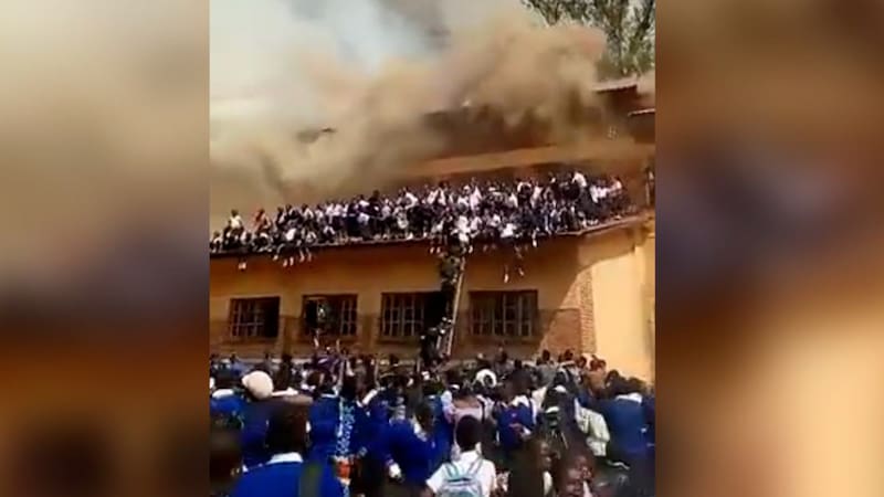 El terrible momento en que un centenar de niñas saltan del tejado de su colegio en llamas en el Congo