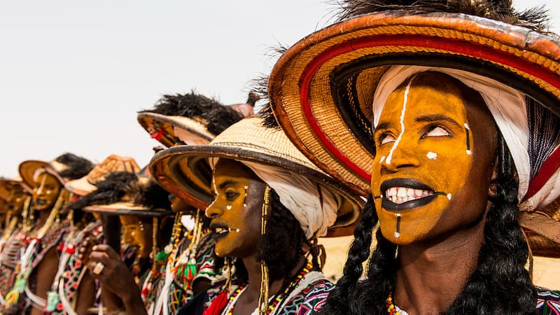 Estatura por encima del promedio, ojos realzados con maquillaje y excelentes habilidades de baile son solo algunos de los atributos que los jóvenes hombres Wodaabes deben lucir si quieren atraer el interés del jurado femenino en un tradicional concurso de belleza en Níger, país de África Occidental.