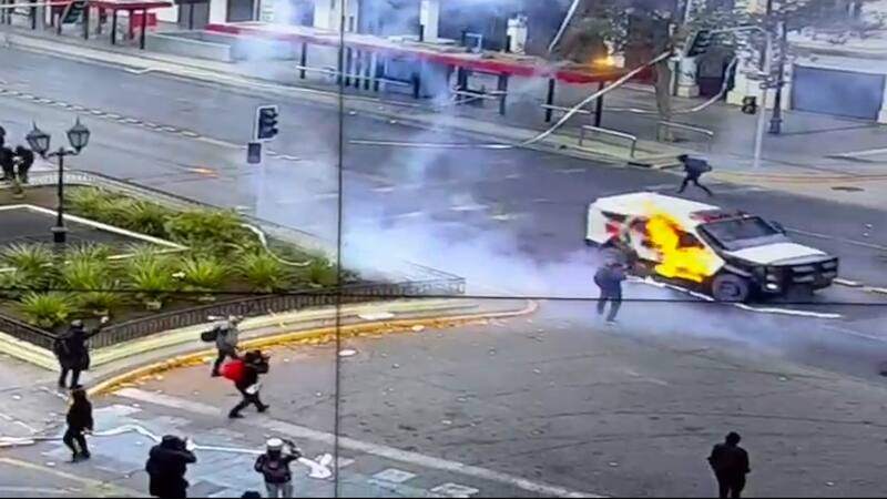 Encapuchados lanzan bombas Molotov a carabineros en la Alameda