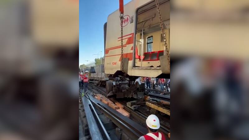 Equipos de Metro de Santiago logran levantar el vagón descarrilado