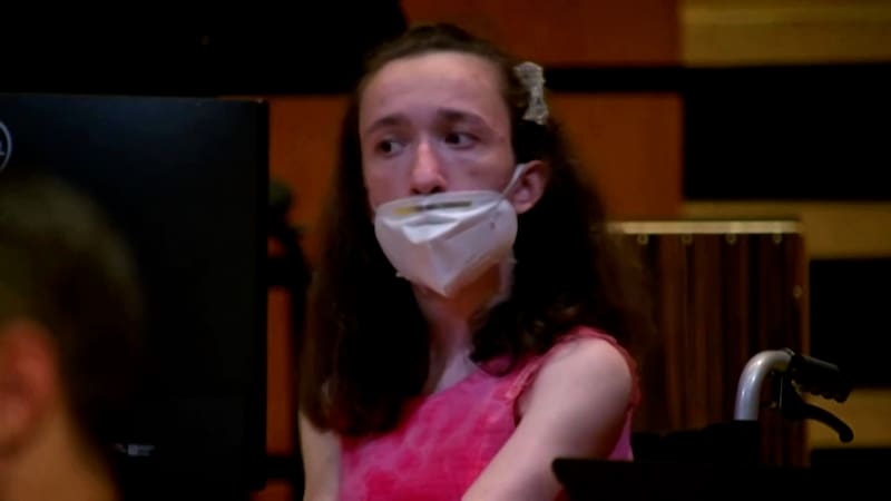 Estudiante con parálisis cerebral toca el arpa con los ojos
