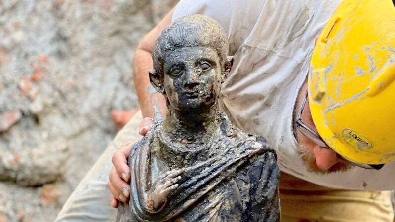Extraen desde el barro 24 estatuas de bronce de la época romana