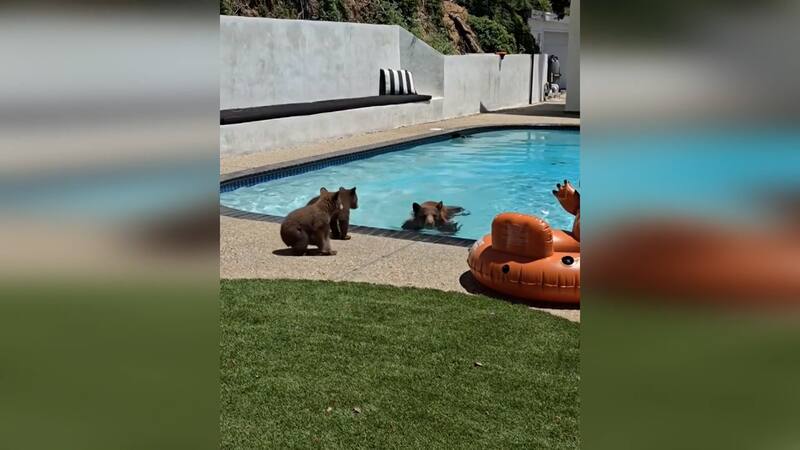 Familia de osos disfruta de un “día de piscina” en una casa en California