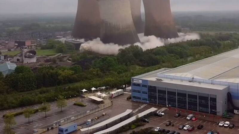 Cuatro torres de refrigeración de la antigua central eléctrica de Rugeley, en Staffordshire, fueron demolidas el domingo 6 de junio.