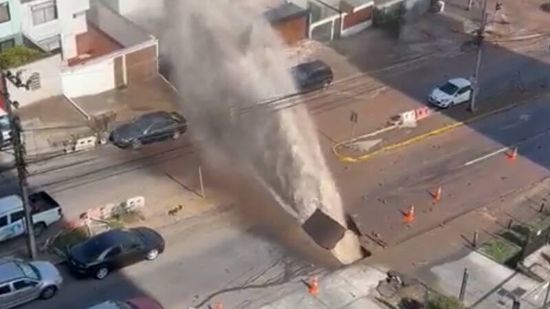 Impactante rotura de matriz en Iquique provoca cortes en la ciudad y advierten socavones