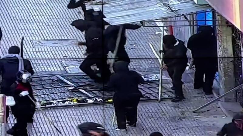 En el marco de la conmemoración por el Día del Trabajador, un grupo de encapuchados realizó daños e intentó osaquear un local comercial en Alameda con República. Además, cámaras de seguridad muestran a sujetos confeccionando artefactos incendiarios en Alameda con avenida España.
