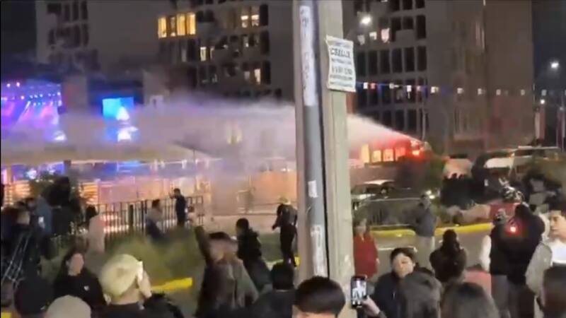Las imágenes de un dron registraron a un grupo de personas intentando ingresar a la fonda "Viva Chile", pese a que se les había informado que ya se había completado el aforo del lugar. El grupo de personas intentó entrar a la fuerza trepando las rejas y Carabineros tuvo que proceder a lanzar gases lacrimógenos para dispersar a la turba.