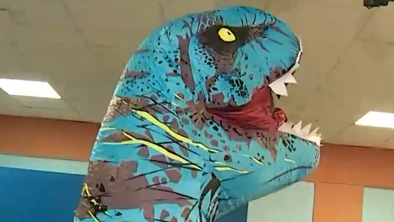 Al menos cuatro personas captadas por las cámaras de television han concurrido a las urnas disfrazados del animal prehistórico.