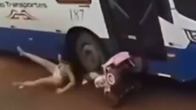 Madre e hija escapan de milagro de ser arrolladas por un autobús