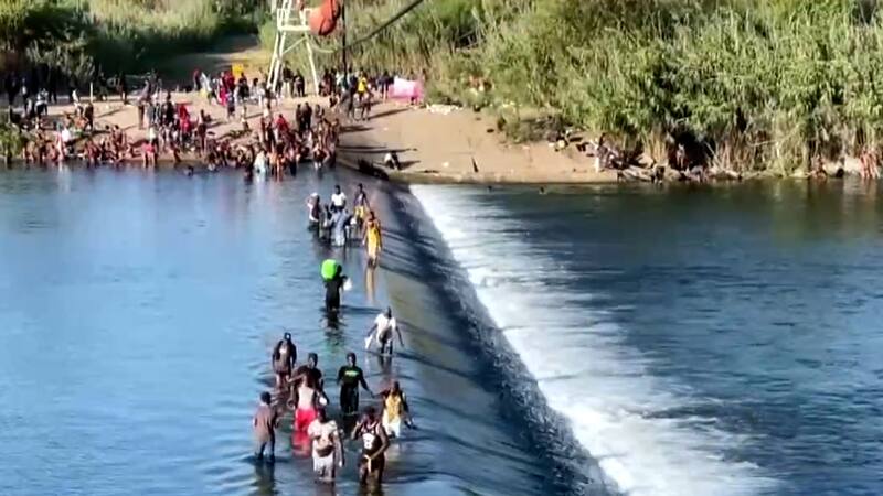 Los indocumentados, en su mayoría haitianos, que buscan cruzar la frontera, se encuentran atascados en el puente Del Río, que cruza el Río Grande conectando a las ciudades de Acuña, en México, y Del Río.