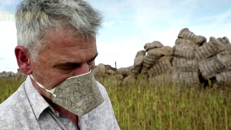 En una fábrica del centro de Francia, un láser corta capas de cáñamo en la línea de producción de lo que, según la compañía, es la primera máscara compostable de Europa.