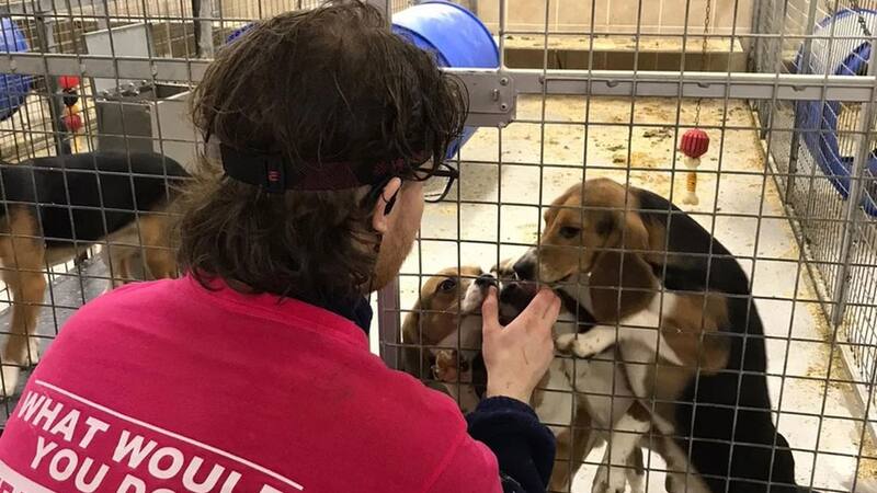 Miembros de la organización Rebelión Animal ingresaron a la fuerza a un criadero de beagles y liberaron a los canes de sus jaulas.