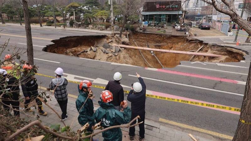 Motociclista muere al caer en un socavón de 20 metros de profundidad en Seúl