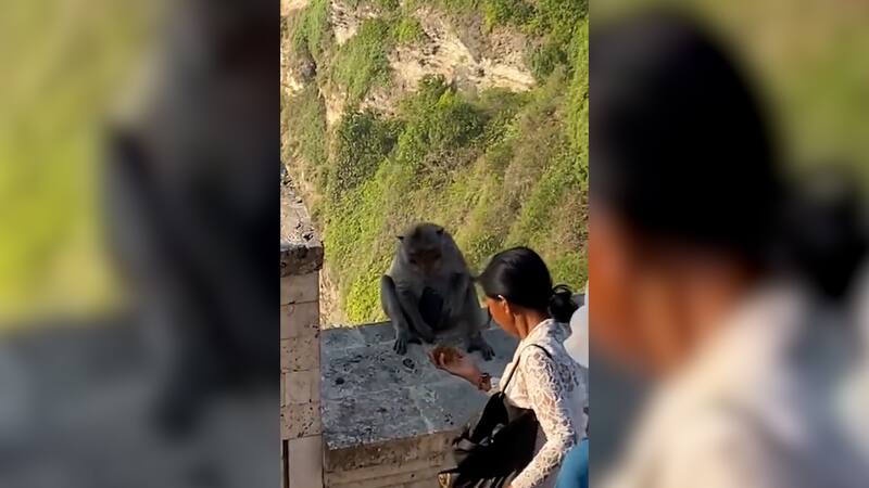 El insólito incidente ocurrió en Bali y ha generado asombro en redes sociales, registro en el que se ve a la turista ofreciendo objetos de su bolso al animal, el cual tras inspeccionar las ofrendas, cede al trueque.