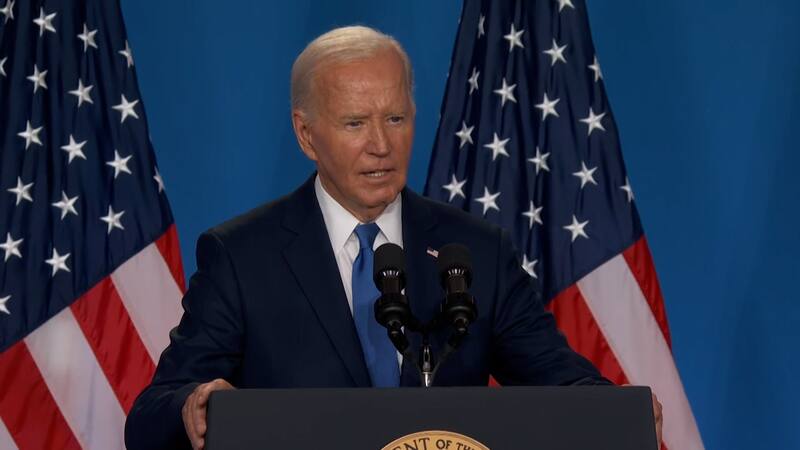El momento se registró tras una pregunta de un periodista en una conferencia de prensa durante la cumbre del 75º aniversario de la OTAN, donde previamente había confundido al presidente ucraniano con Vladimir Putin.