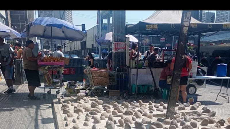 En la calle Toro Mazote, en la comuna de Estación Central, se instalaron nuevos "obstáculos" de piedra para frenar al comercio ambulante que se suele establecer en las veredas de dicha zona.