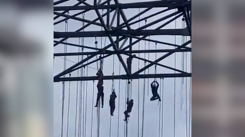 Obreros quedan colgando a 140 metros tras el derrumbe de un andamio en Sao Paulo