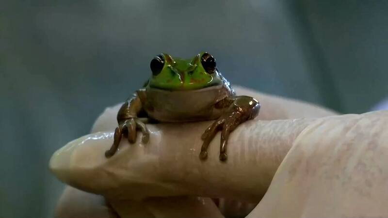 El profesor de biología y conservacionista de la Universidad de Newcastle en Nueva Gales del Sur, Australia, ha dominado la imitación y la comprensión de los numerosos chillidos, graznidos y silbidos de las ranas para localizarlas en la naturaleza y se emociona cada vez que ellas responden.