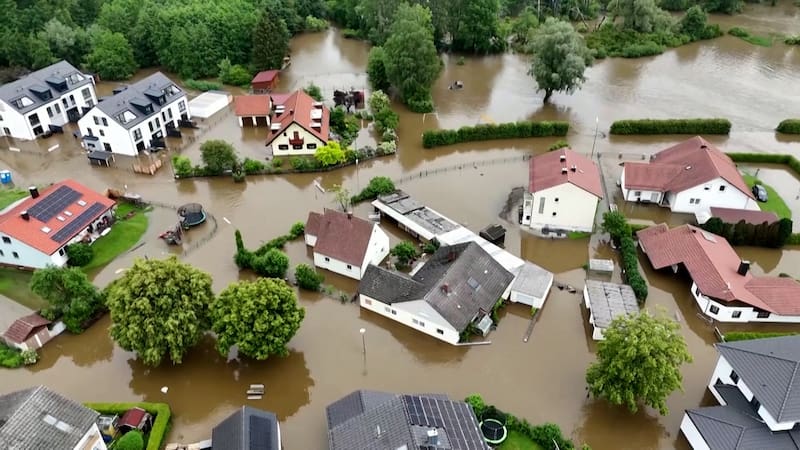 Registro de dron muestra las graves inundaciones al sur de Alemania