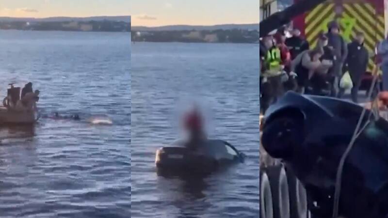 El vehículo eléctrico cayó a un fiordo helado y quedó a la deriva en el agua, a unos 20 metros del muelle, pero sus ocupantes fueron rescatados por una inusual embarcación noruega, que llegó a tiempo y evitó una tragedia.